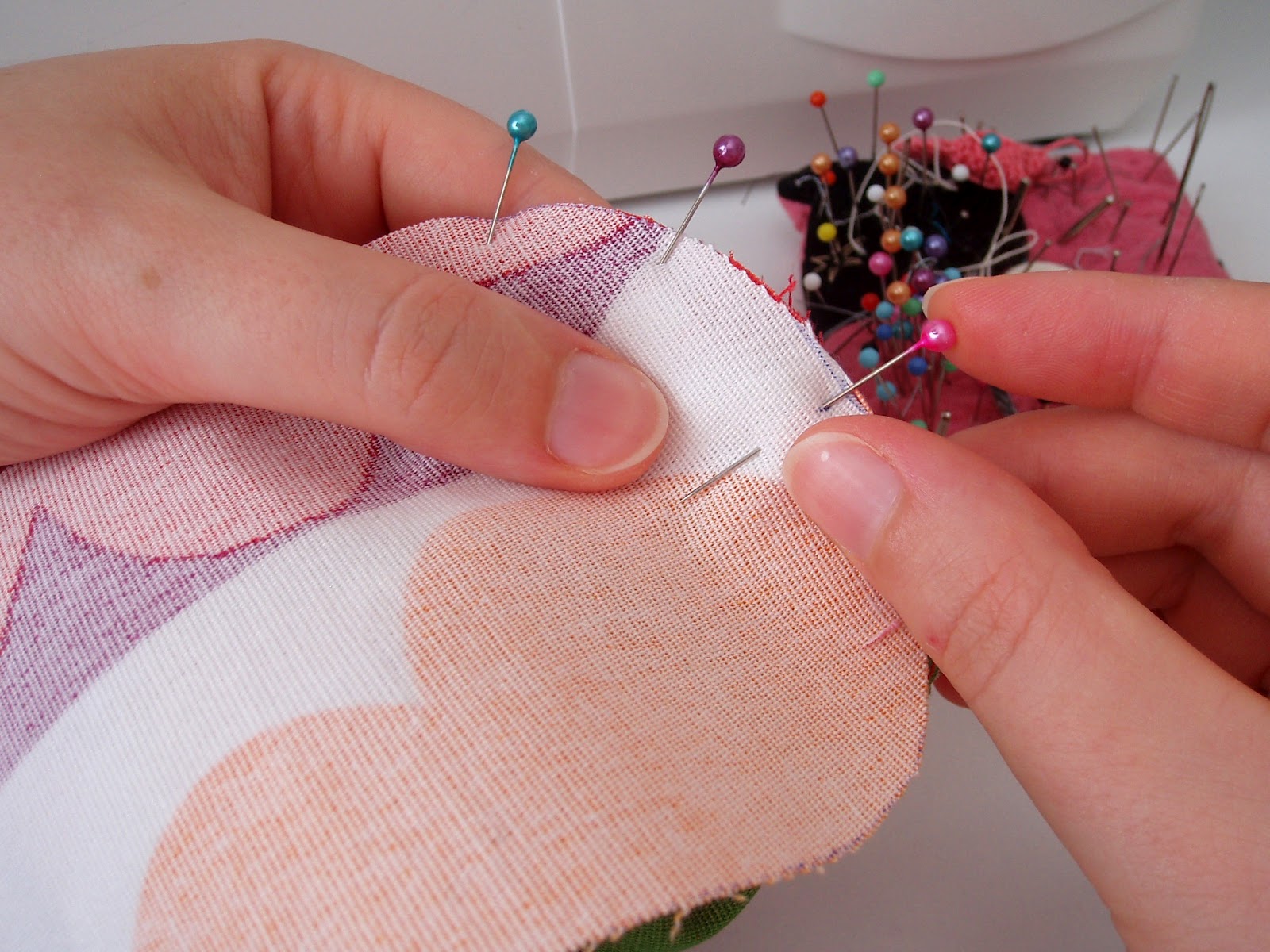 And (after turning inside out the almost finished slipper) other pins to fix the parts that need to be hand-stitched: